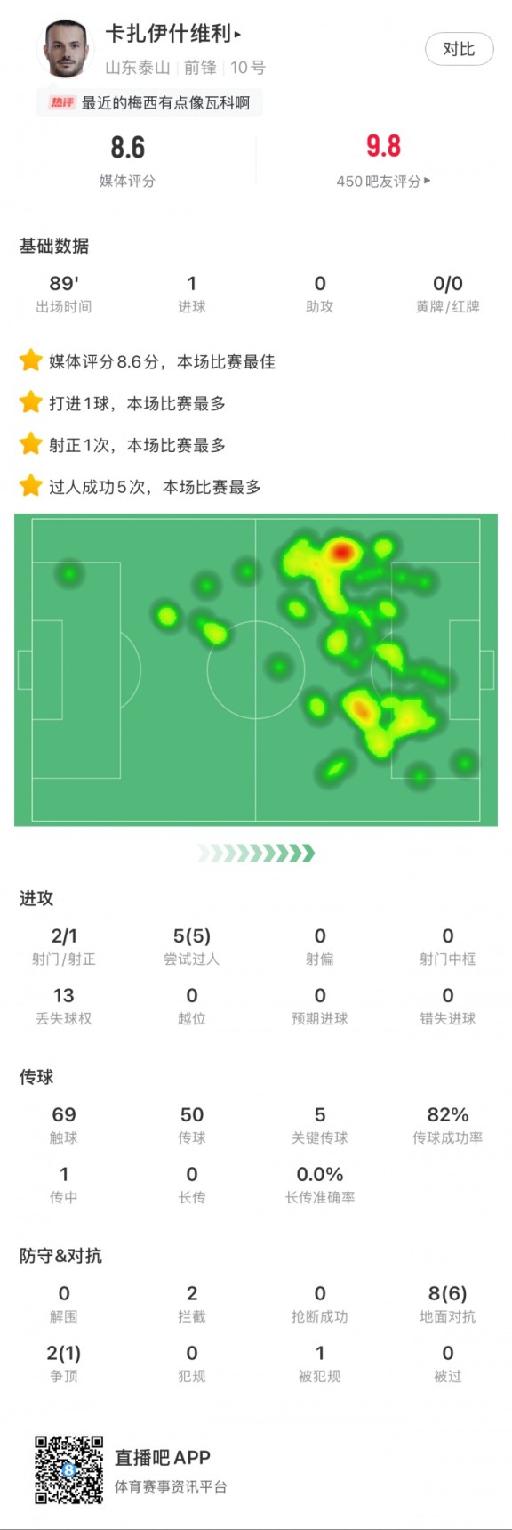 【】中超第18轮最佳球员:卡扎戴帽闪耀,本赛季第二次当选