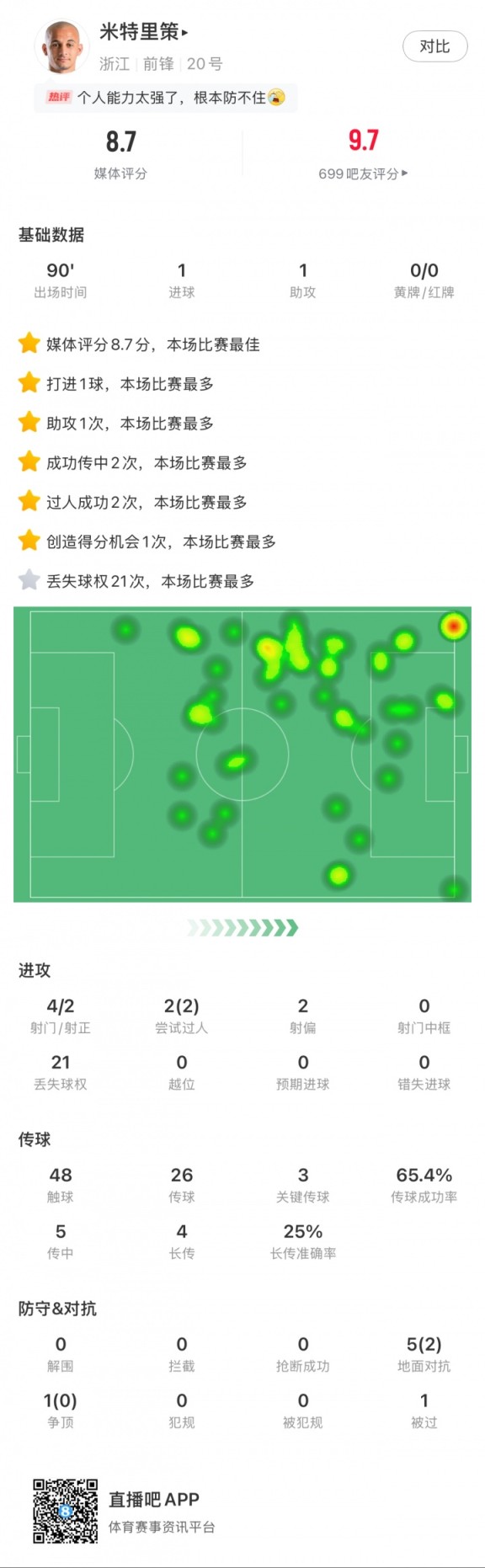 【直播吧】中超第20轮最佳球员:34岁颜骏凌当选,上海德比封神!