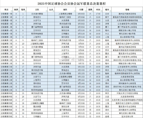 2025中国足球协会会员协会冠军联赛总决赛赛程出炉
