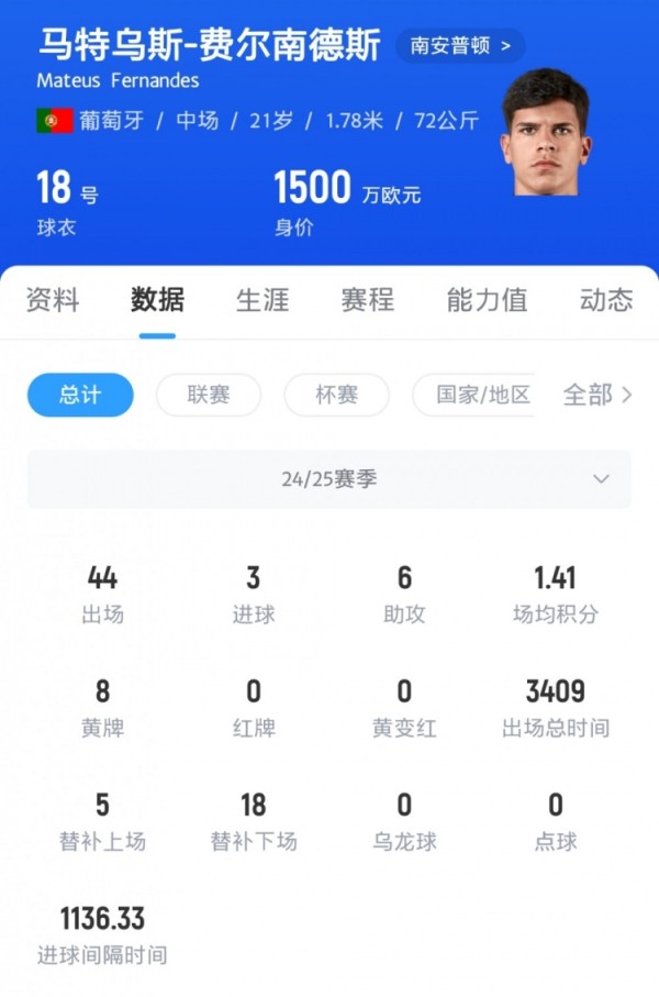 圣徒的要价接近5000万英镑,而且他们无意出售这名葡萄牙中场。
