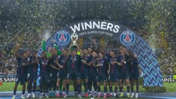 【捧杯时刻】巴黎队史首夺欧超杯!马尔基尼奥斯捧起冠军奖杯