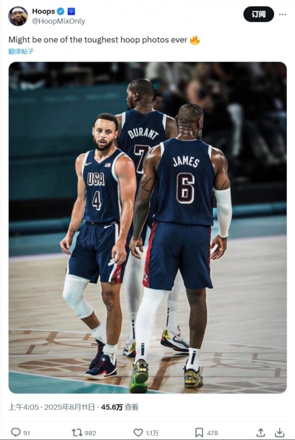 美媒晒詹杜库奥运合照:可能是史上最酷的篮球照片之一